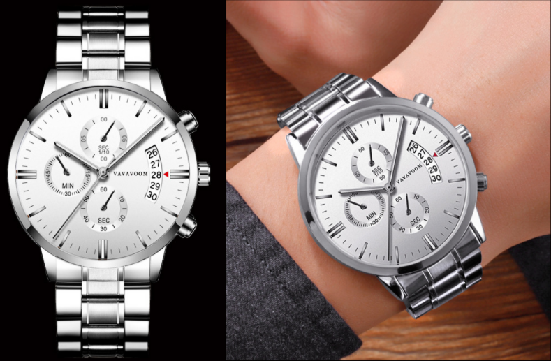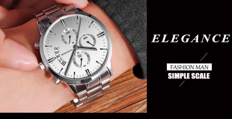 • Non-mechanical men's stainless steel with business casual calendar quartz watch